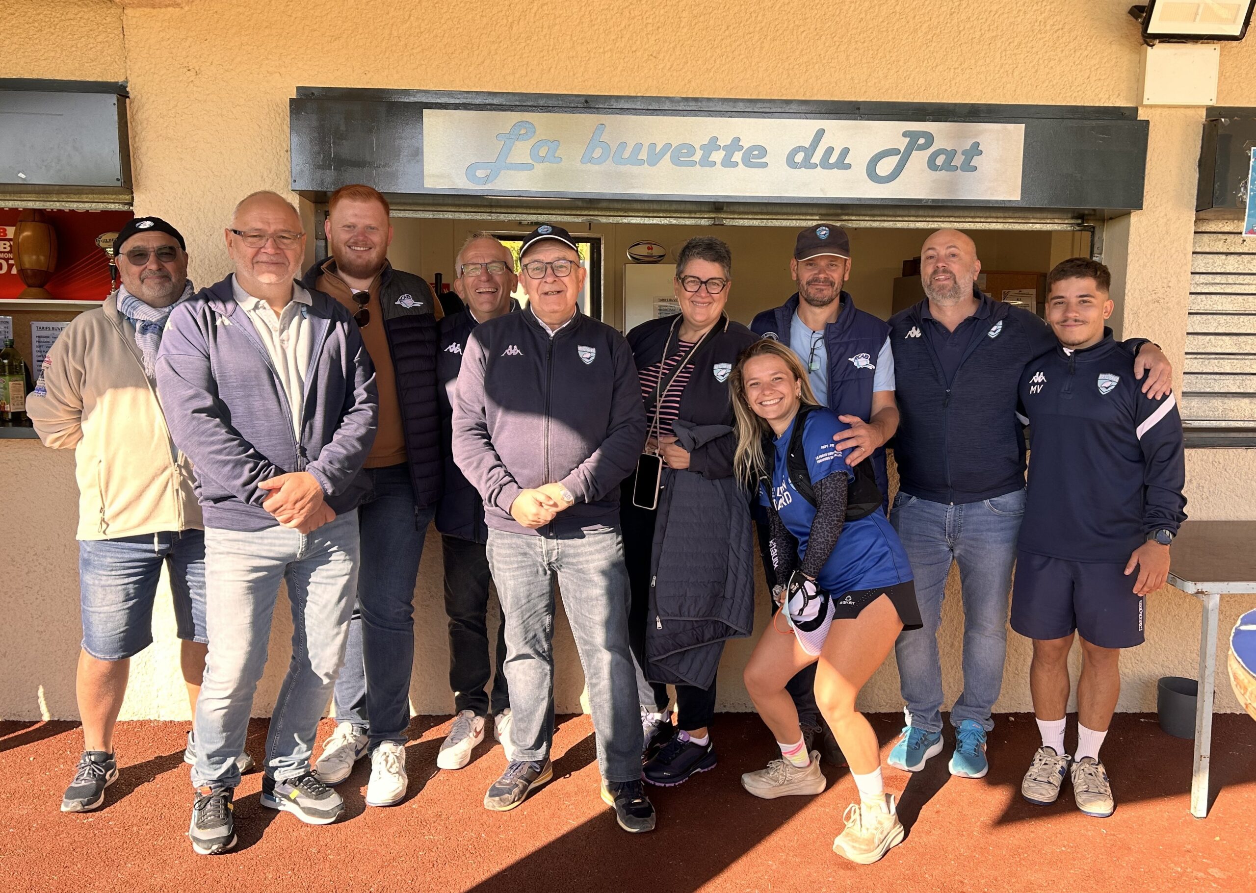 L’idée a plutôt fait l’unanimité, en concertation avec son épouse Huguette et son fils Antonin, eux aussi impliqués au sein du RCAB, et a été matérialisée ce week-end. Une de nos bénévoles, Léana Verrière, a lancé le projet en concertation avec Emmanuel Delorme, un dirigeant et partenaire engagé du club qui a fait confectionner une pancarte en aluminium brossée sur laquelle est inscrit: « La buvette du Pat ».