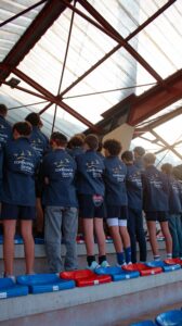 Clément Vidal (responsable du CEL et du pôle jeunes) et Bruce Mathieu (responsable EDR) encadrent les entraînements, accompagnés par Victor Bruat (préparateur physique).
